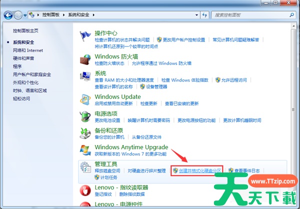 方法二:1、也可以通过控制面板-系统和安全,然后点击“创建并格式化硬盘分区”。