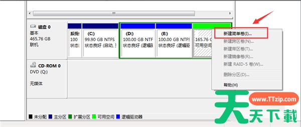 Win7纯净版系统如何分区?电脑分区可以很好的存储文件,让你电脑运行更加流畅,如果电脑只有一个分区的话,要给文件分类或者需要重装系统的时候会很麻烦,那我们应该如何分区呢?下面天天下载Ttzip就教下大家Win7系统分区教程,一起来看看吧!