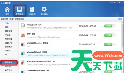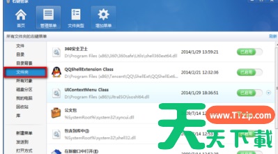 6、接下来我们在主界面可以看到很多选项,在管理菜单中我们可以管理各种文件右键菜单,具体请大家自行设置,这里不再赘述。