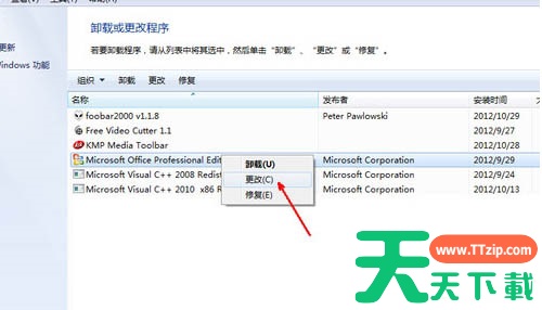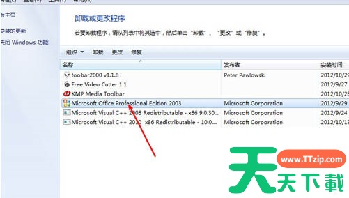 2、在要卸载或更改的程序列表里找到office软件,若你的软件遭到了很严重的破坏,连卸载更改程序都没有,你就得要用一些专业的卸载软件去处理了。