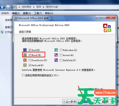 5、然后在软件列表里选定你要安装的程序,其中要包括excel软件,把前面的复选框选定就ok了。最后点击更新按钮。