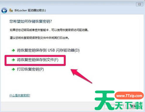 4、为了防止以后忘了密码,出现无法访问磁盘的问题,最好在出现的界面上选一个位置保存密码文件;