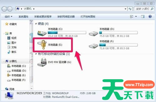 1、首先把电脑的计算机打开,之后找到想要加密的磁盘;