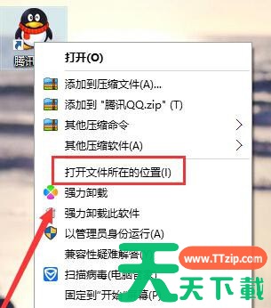 1、首先在win7旗舰版系统中右键点击桌面上的QQ快捷方式,点击“打开文件所在的位置”;