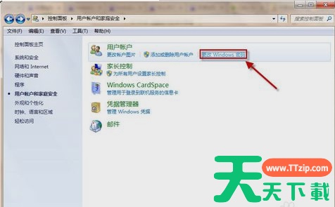 找到“用户账户和家庭安全”并单击打开,在点击“更改windows密码”;