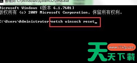1、管理员身份运行DOS,在界面中输入netsh winsock reset,回车进行修复即可,如图所示: