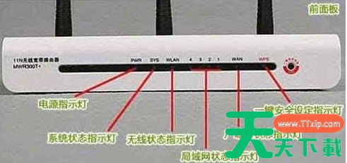 3、如果也有连接路由器的,那就检查路由器的指示灯,如图所示(以具体为准),第一个灯是系统灯,如果这个灯一闪一闪的就是正常的,中间的几个(电脑图形)就是网线接口指示灯,看你连接的那个口亮的就是正常的,后面的那个地球的就是上网状态,这个灯亮的就说明话上网是可以的;