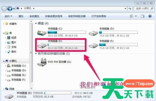1、我们可以通过win7系统自带的bitlocker驱动器加密程序对硬盘或者U盘进行加密,点击打开桌面上的计算机,找到想要加密的磁盘。如下图所示:
