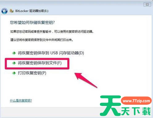 4、为了防止忘了密码,出现无法访问磁盘的情况,我们最好在出现的界面上选择一个位置保存密码文件。如下图所示: