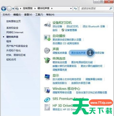 2、在【硬件和声音】窗口,点击【声音】→【更改系统声音】;