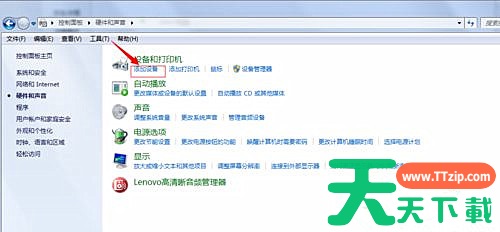 1、再开始里点击控制版面,点击【硬件和声音】找到【添加设备】;