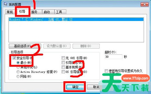 Win7旗舰版系统的安全模式可以在电脑中毒或者出现问题的时候让Win7旗舰版用户进入安全模式进行修复。Win7旗舰版怎样进入安全模式?天天下载Ttzip分享一下Win7旗舰版进入安全模式的方法。