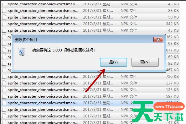 7、之后在弹出来的删除确定提示中,点击”确定“即可开始删除缓存文件,删除完毕再清空回收站,即可清除dnf缓存。