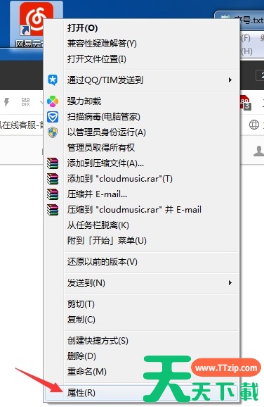 1、鼠标右键出现兼容问题的软件图标,选择属性打开。