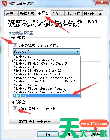 3、勾选“以兼容模式运行这个程序”并展开选择此程序兼容的windows操作系统,接着勾选“以管理员身份运行此程序”,点击保存即可。