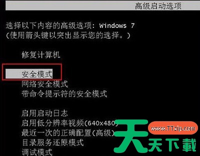 1、重启电脑开机按F8进入安全模式,删除之前更新的驱动和补丁。