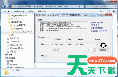 1、网上下载tcpip修复工具进行修复tcpip.sys文件(注意:如果是盗版系统,修复后桌面右下方可能会有提示)。