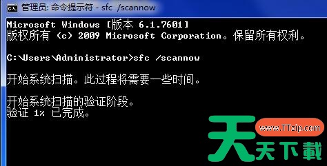 2、在窗口中,输入sfc /scannow,回车即可看到进程正在运行,耐心等候修复验证完成。