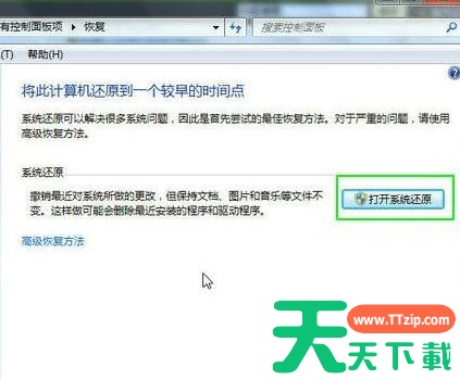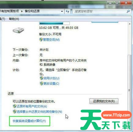 1、同样打开控制面板中的备份和还原,再点击“恢复系统设置或计算机”。