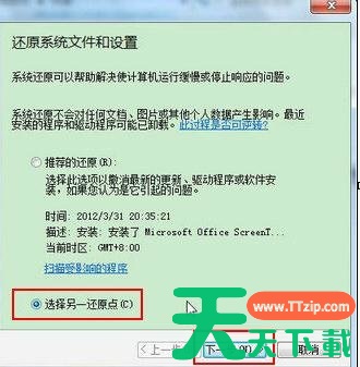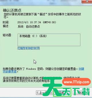 4、可以看到表中列出了日期和时间以及描述信息,可以根据你的需要选择还原点。