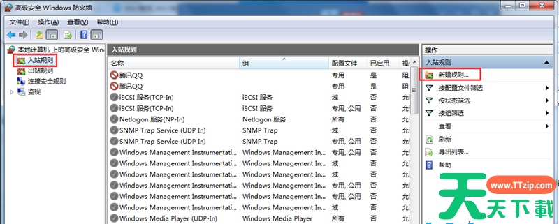 Windows防火墙是电脑系统一个极其重要的组成部分,可以防止其他用户入侵您的电脑,保护您电脑的系统安全。但是很多用户都不知道自己的防火墙是开启还是关闭。这里天天下载Ttzip就给大家讲讲Win7旗舰版设置Windows防火墙端口的办法吧。