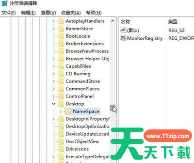 2、打开注册表后依次定位到:HKEY_LOCAL_MACHINESOFTWAREMicrosoftWindowsCurrentVersionExplorerDesktopNameSpace。