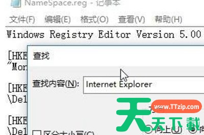 6、使用记事本打开刚刚保存的注册表,按CTRL+F组合键打开查找功能,在查找中输入Internet Explorer内容,找到相应的项目。