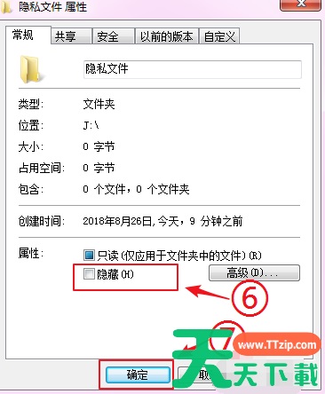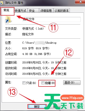 10、点击【常规】然后勾选【隐藏】,最后确定完成。