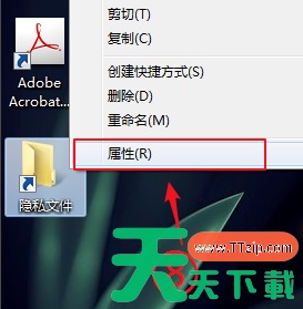 8、回到桌面,鼠标右击隐藏文件的快捷方式,然后选择【属性】。