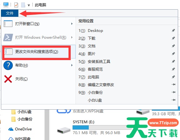 1、双击桌面计算机图标进入,点击上方的文件,选择更改文件夹和搜索选项。