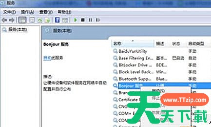 只有安装了iTunes了才可以对苹果手机进行管理,Win7系统安装iTunes软件可以连接平板电脑和苹果手机,但是使用过程中不可避免会遇到一些问题,就有一些Win7纯净版用户打开iTunes时出现错误提示“bonjour服务已被禁用”,这该怎么办?这里天天下载Ttzip给大家分析分析。