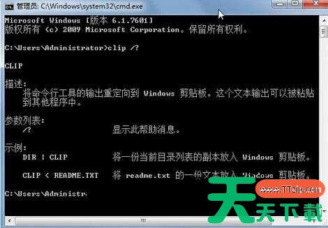 2、然后在打开的命令提示符窗口中,输入clip /?命令符调用剪贴板查看器(注意,clip和/之间是有一个空格的)。