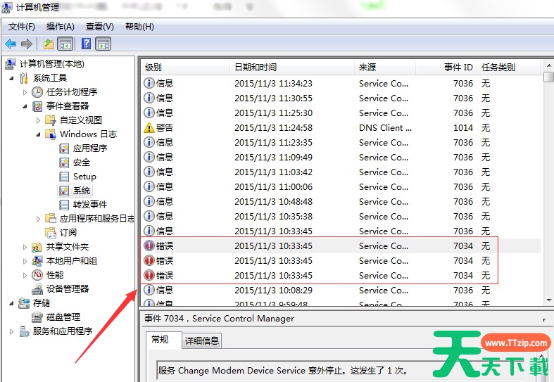 2、查看系统错误日志,右击计算机选择管理,根据图片依次展开列表,查看并针对性的解决问题,一般也就是卸载驱动和最近安装的软件程序。