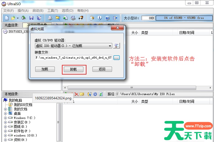 6、当然这个虚拟光驱不用时也可以按照如图两种方法卸载,就像真实CD/DVD-ROM等光驱器弹出一样。
