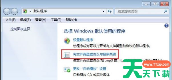 3、在默认程序当中打开“将文件类型火协议与程序关联”;