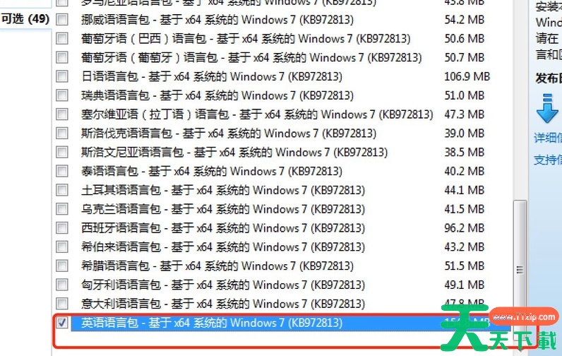 6、选择需要的语言包,天天下载Ttzip这里选择的是英语语言包,点击确定按钮,进入下一步。