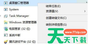 2、找到桌面窗口管理器,单击右键,选择结束任务。