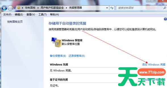 我们在使用Win7旗舰版的时候,如果经常登录某些服务器,就会一直被提示填写账号密码,非常麻烦。其实添加Windows凭证即可解决这个问题。那么Win7旗舰版如何添加Windows凭证呢?下面天天下载Ttzip就给大家演示一下Win7旗舰版是如何添加Windows凭证的。