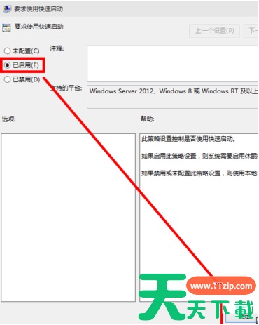 3、在打开的配置界面中勾选【已启用】,然后点击【确定】重启电脑我们就会发现电脑的开机速度明显变快了。
