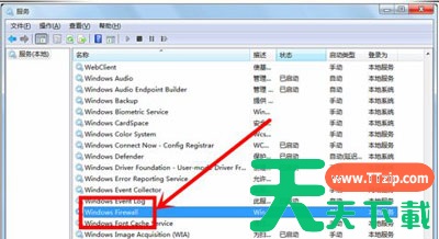 3、在系统服务窗口中,用鼠标点击右侧服务列表,同时切换到英文输入法状态,按下字母“w”键,快速定位到“w”开头的服务,在其中找到“Windows Firewall”服务。
