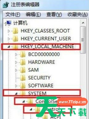 2、点击进入之后,在窗口内依次点击“HEKY_LOCAL_MACHINE”、“SYSTEM”、“ControlSet001”、“Control”。