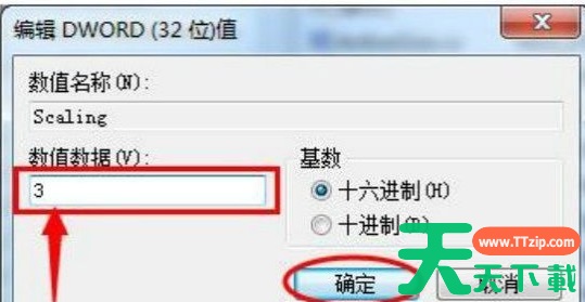 6、接下来会弹出一个小的编辑框,如图所示,里面的数值数据应该是显示的“4”,把这个值从4改成3,然后点击确定就可以了。然后重新进入游戏,选择全屏模式,应该就可以实现全屏操作了。