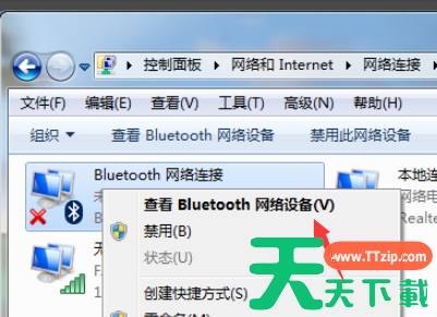 4、之后找到蓝牙,右键打开菜单,点击查看bluetooth网络设备。
