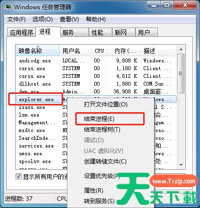 最近有用户反映自己电脑在发现开机后没有显示桌面,其实这是因为电脑在运行程序的时候,是要和电脑系统匹配的,如果安装了不兼容的软件,就容易引起explorer.exe进程故障,也就无法显示桌面。下面就和天天下载Ttzip一起看看Win7系统不显示桌面的解决方法吧。