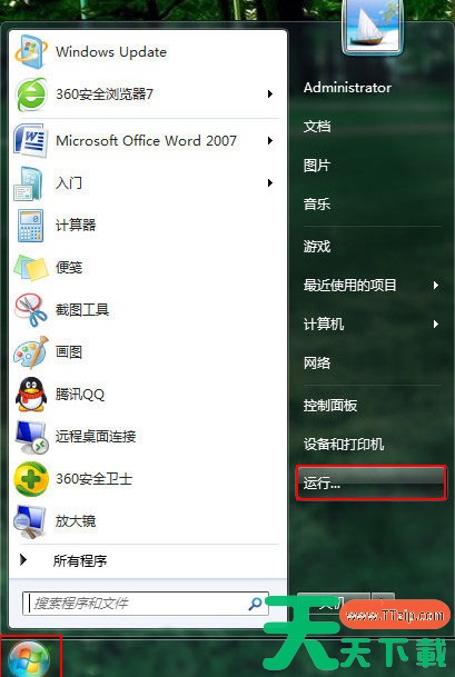 1、选择桌面左下角“windows”图标,然后点击“运行”选项,如下图所示: