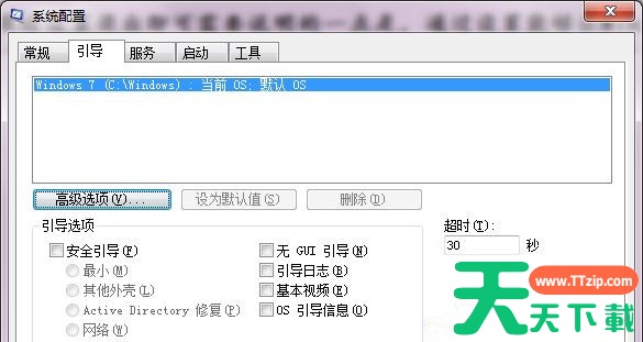 2、这时候会跳出一个显示系统配置的对话框,在这个对话框里点击“引导”然后再去点击“高级选项”。