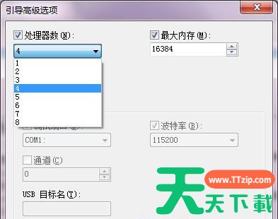 3、因为Win7系统默认的处理器个数为1,如果你是双核用户的话就可以设置成2,然后勾选最大内存再点击确定就可以了。