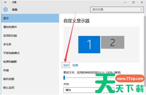 2、先点击标识,标识出两个显示器。