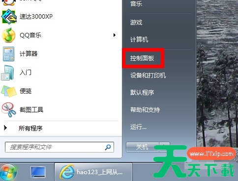 1、在电脑左下角的开始菜单里找到【控制面板】选项。
