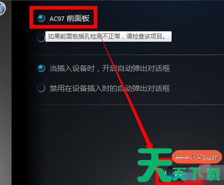 5、在弹出的面板里我们点击【AC97前面板】,重新装载音频装置。